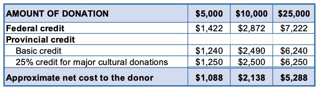 A first significant cultural donation gives you access to an additional tax credit. Sometimes, giving more actually costs less!