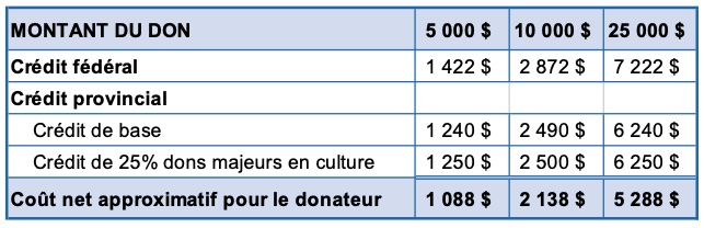 Un premier don important en culture vous donne droit à un crédit d’impôt supplémentaire. Parfois, donner plus coûte moins cher!
